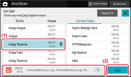 İşlem panelindeki [Belirli Aralığı sil] tuşuna dokunun.