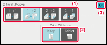 FOTOKOPİ ÇEKMEK İÇİN TEMEL PROSEDÜR2 taraflı kopya modunu seçin.