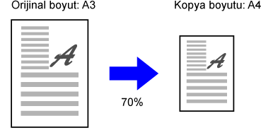 Örneğin, orijinal boyutu olarak A3 ve kağıt boyutu olarak