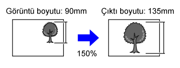 Genişletme oranındaki küçültme, orijinal boyutuna ve seçilen kağıt boyutuna bağlı olarak otomatik olarak seçilir.