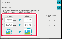 İstenen yakınlaştırma oranının belirtilmesiResim boyutunun ve çıktı boyutunun X ve Y boyutlarını belirleyin.