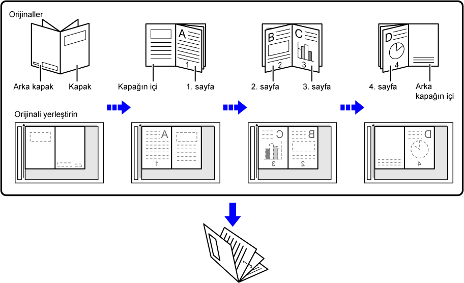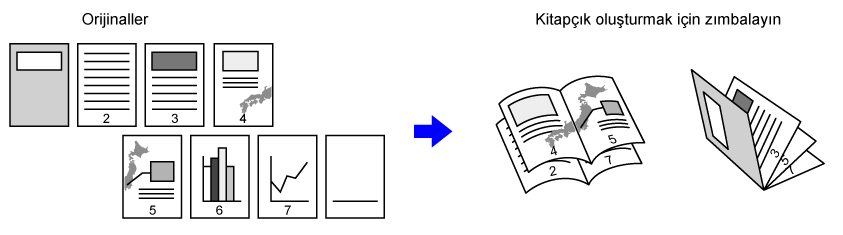 Bu işlevle oluşturulan fotokopiler kitapçık oluşturacak şekilde