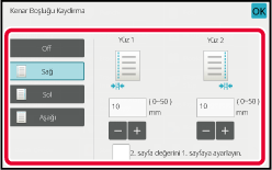 Ön taraf veya arka taraftaki kenar boşluğu kaydırma alanını gösteren sayısal değer ekranına dokunun ve sayısal tuşları kullanarak alanı girin.