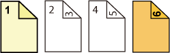 ![]() İlk ve ikinci orijinal sayfalara ön kapak olarak 2 taraflı fotokopi çeker ve ayrıca altıncı orijinal sayfaya arka kapak olarak 1 taraflı fotokopi çeker. |