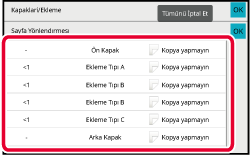 Ayraç sayfaları üzerine fotokopi çekerken, [Insertler üzerine de Kopya yapın] onay kutusuna dokunarak