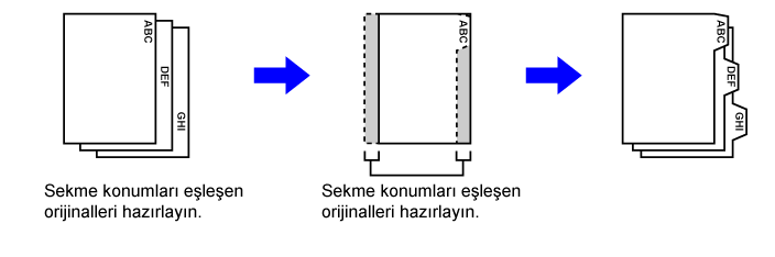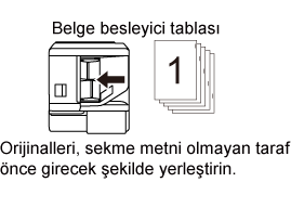 | Orijinaller | Orijinali yerleştirme | Sekmeli kağıt yükleme |