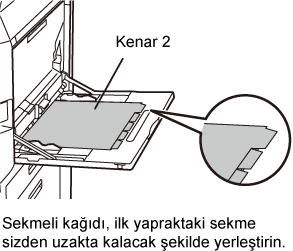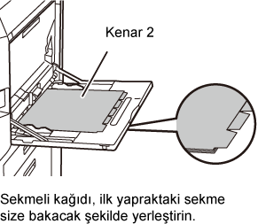 Baypas tablasına bir sekmeli kağıt yerleştirin ve sekmeli kağıda