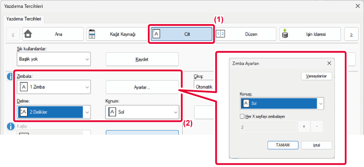 2 taraflı yazdırma ile bir arada kullanılabilir.