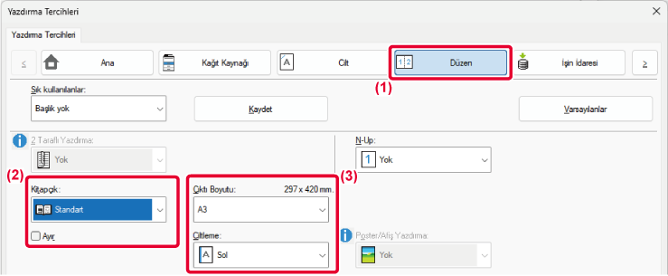 ve çıkarır. Bu işlev, yazdırılan çıktıları bir kitapçık halinde