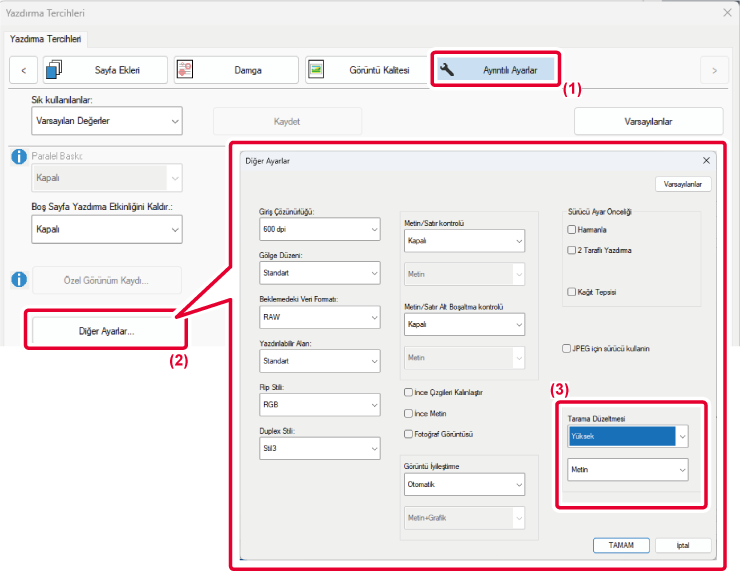Metin ve grafiklerin kenarlarını daha pürüzsüz veya daha keskin yapabilirsiniz. Otomatik: Optimum görüntü geliştirme uygulayın. Kapalı: Görüntü geliştirme uygulanmaz. Keskin: Görüntü geliştirme keskin şekilde uygulanır. Yumuşak: Görüntü geliştirme yumuşak şekilde uygulanır. |