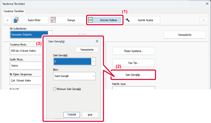 yazdırma çizgileri belirgin değilse çizginin tamamının kalınlığını