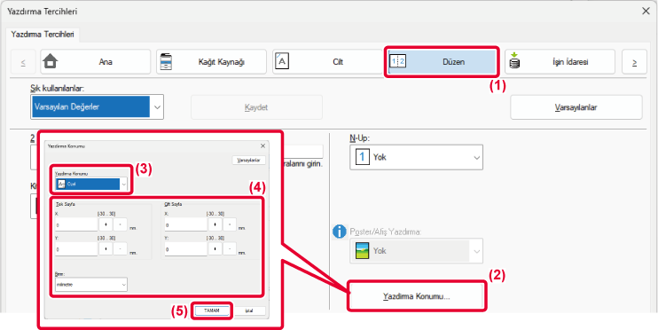 için ayrı ayrı yazdırma konumları (kenar boşlukları) ayarlar ve