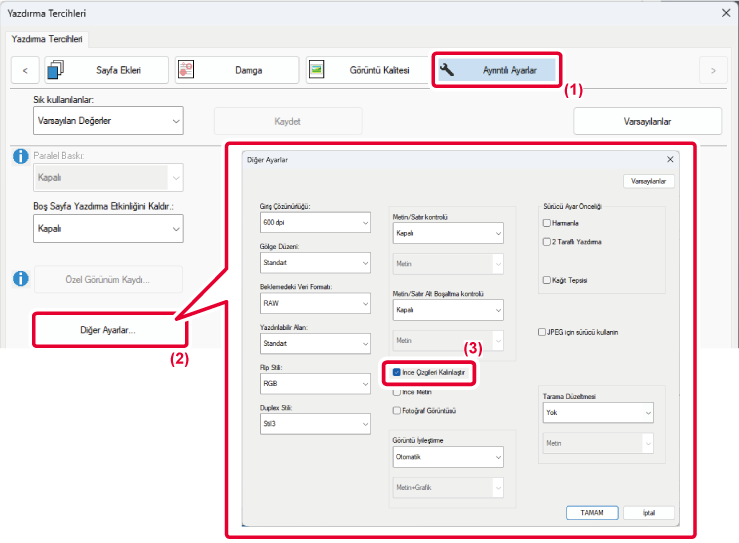 düzeltmek ve daha kalın metin ve çizgilerin görünümünü baskılamak