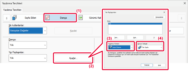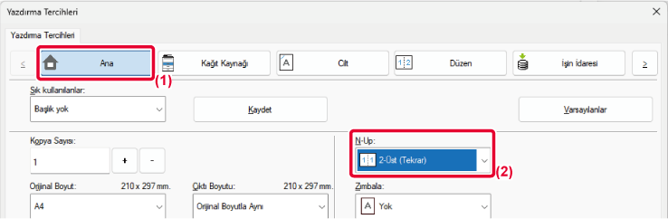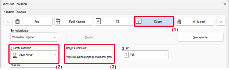 ve yazıcı sürücüsü özellikleri penceresinin [Düzen] sekmesindeki