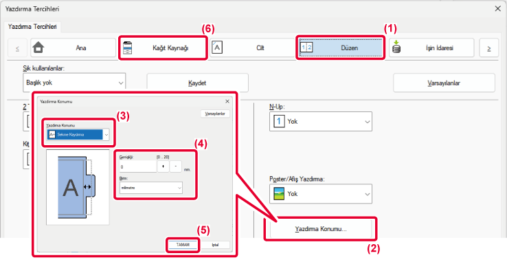 [Yazdirma Konumu] bölümünde metin kaydırma mesafesini belirleyin. Metin,