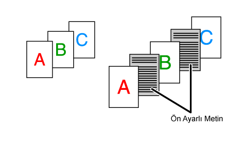 ancak farklı bir kağıt kasetinde bulunan kağıt üzerine fazladan