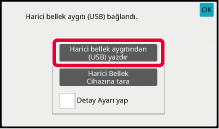 İşlem seçmenizi isteyen ekran çıktığında [Harici bellek aygıtından (USB) yazdır] seçeneğine dokunun.