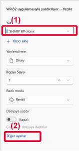 - Yazdırma işlemi sırasında kopya sayısını