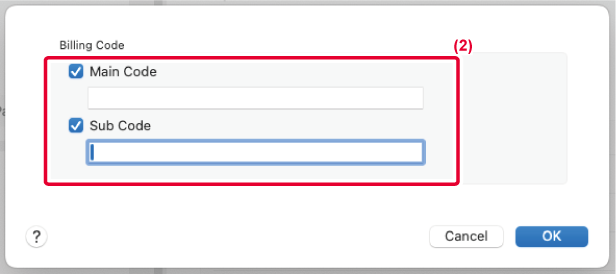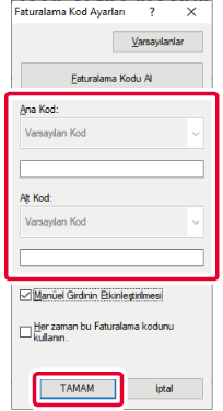 Yazdırma işlemi başladığında, faturalama kodu ayar ekranı