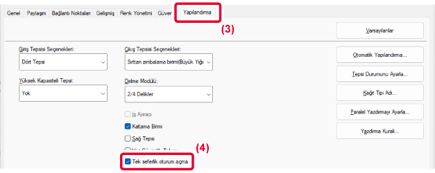 etkinleştirildikten sonra, yazıcı sürücüsünde aşağıdaki ayarları