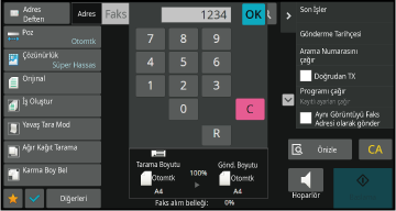Bir hedef faks numarası girmek için [Doğrudan Gırış] tuşuna veya [Faks Numarası] üzerine dokunun.