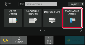 Ana ekranda veya adres defteri ekranında, işlem panelindeki [Şuraya bakın: Mobil Adres Defteri] öğesine dokunun.