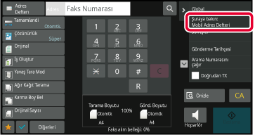 Ana ekranda veya adres defteri ekranında, işlem panelindeki [Global Adres Arama] öğesine dokunun.