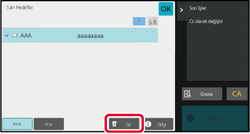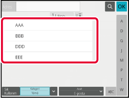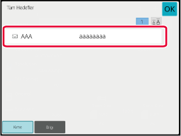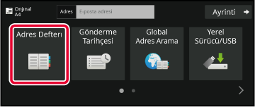 Kolay tarama ekranında veya E-posta modunda adres defterini