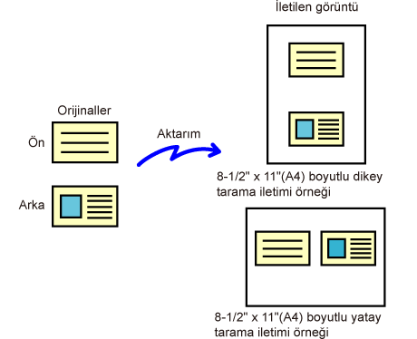 bir kartın ön ve arka tarafını bir tek sayfa olarak gönderin.