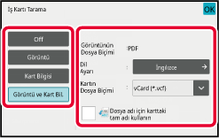 Kartvizit Tarama için ayarları belirleyin.