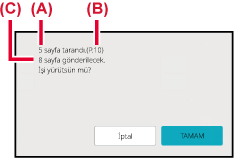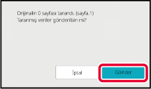 Taramanın bittiğini göstermek üzere bir bip sesi duyulacaktır.Tarama sona erdiğinde, orijinal sayfa sayısını ve gönderilecek sayfa sayısını kontrol edin ve iletimi başlatmak için [TAMAM] tuşuna dokunun.