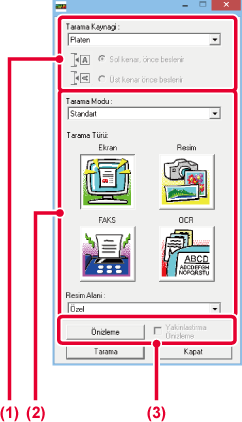 düğmesi:Bir görüntü önizleme görüntülenir ve tarama alanı belirtilmezse,