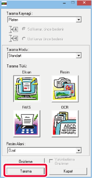 - Tarayıcı Sürücüsü seçme ve taramayı başlatma