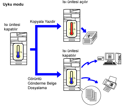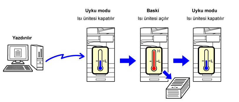yazdırma dışı işlemler, ısıtma ünitesi kapalı halde gerçekleştirilir.