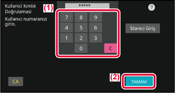 Sayısal tuşları kullanarak (5 ila 8 haneli) kullanıcı