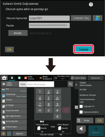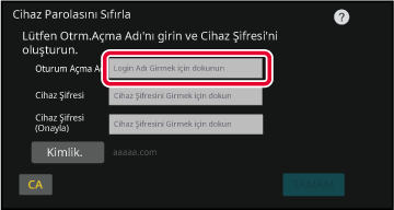 " olarak görünür. Girildikten sonra, [TAMAM]