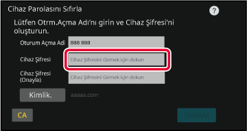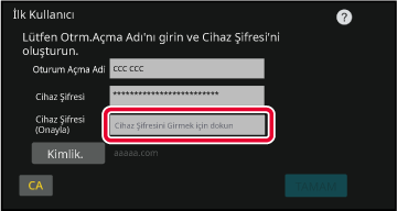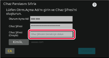 "Cihaz Parola Onayı" bölümündeki 3. adımda ayarlanan