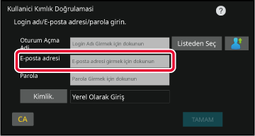 yöntemine bağlı olarak, [E-posta adresi] tuşu ekrana gelebilir. [E-posta adresi] metin