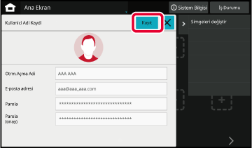 Kullanıcı bilgisini girin ve [Kayıt] tuşuna dokunun.