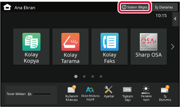 [Sistem Ayarları] sekmesine dokunduğunuzda ekranda öğe tuşları