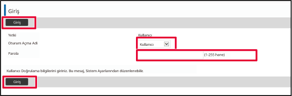 Varsayılan değer durumunda, kullanıcı parolası girilmesi gerekir.