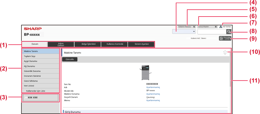 Bu bölümde, ayar modundaki çalışma yönteminde yer alan