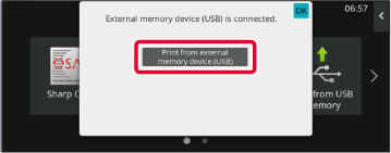 When you tap [Select File from USB Memory to Print], connect the USB memory device to the machine.