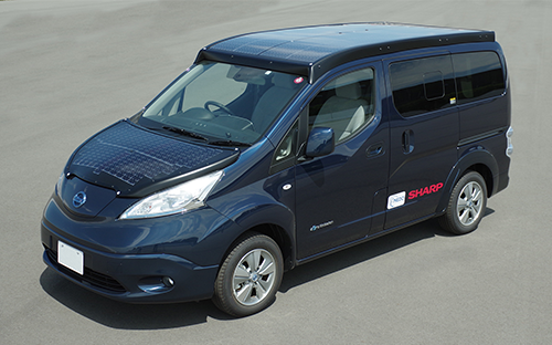 Sharp has initiated public road trials of EVs equipped with high-performance Sharp solar cells exhibiting a conversion efficiency greater than 34%. These trials aim to demonstrate the feasibility of future solar-powered cars, including the potential for charge-less EVs. Specifically, in partnership with Toyota, an EV equipped with 860 watts of high-efficiency triple-junction solar cells demonstrated sufficient solar-derived power to propel a standard-sized consumer sedan 44.5 km/day under normal solar illumination conditions.